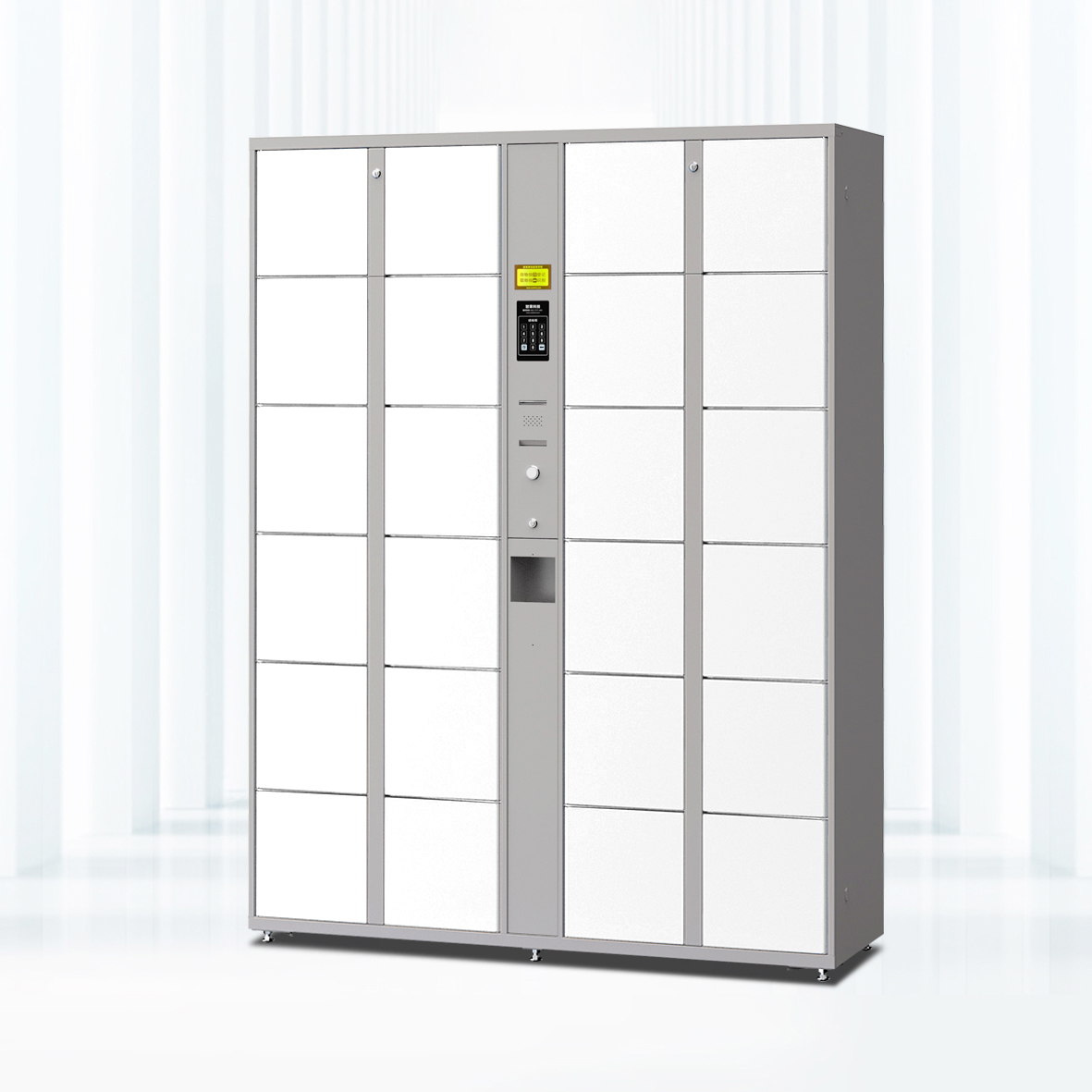 超市、商場、藥店的共同特點是顧客流量較大,流動性大,難于管理,所以適合隨機一次性存包方案,即使用機設條碼式智能寄存柜。